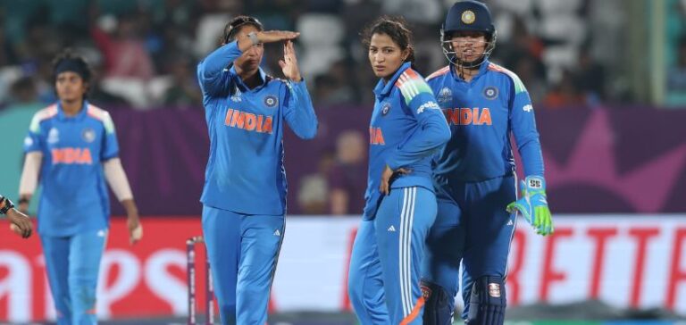 South Africa’s left-arm spinner Nonkululeko Mlaba has been reprimanded for an inappropriate gesture towards Indian batter Harleen...